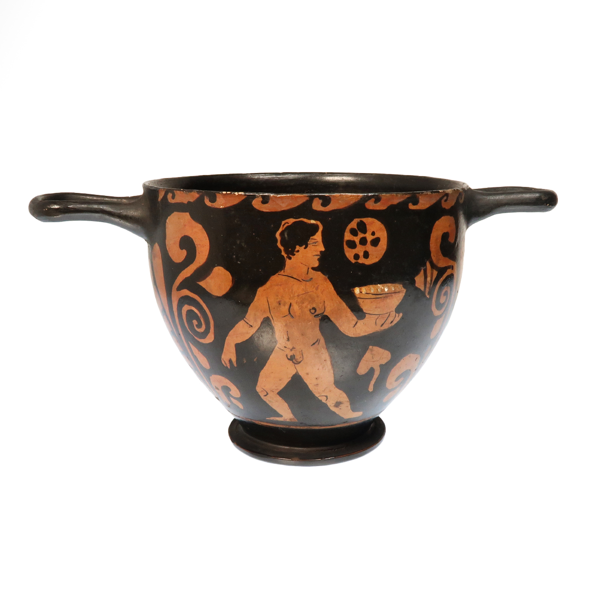 Greek Apulian Red Figure Terracotta Skyphos, Attributed to The Manner of The Roccanova Painter, c. 5th-3rd Century B.C.