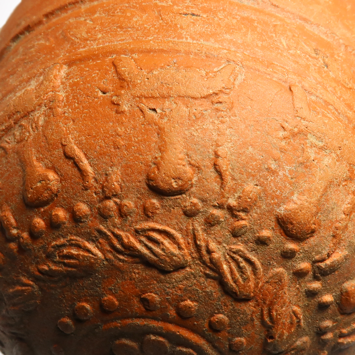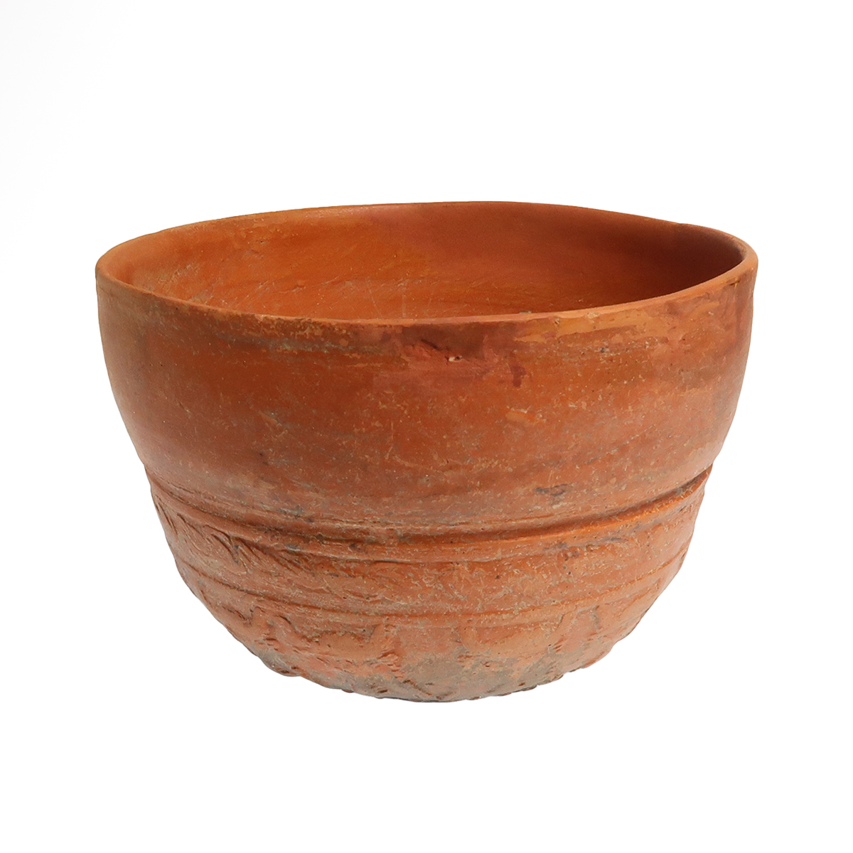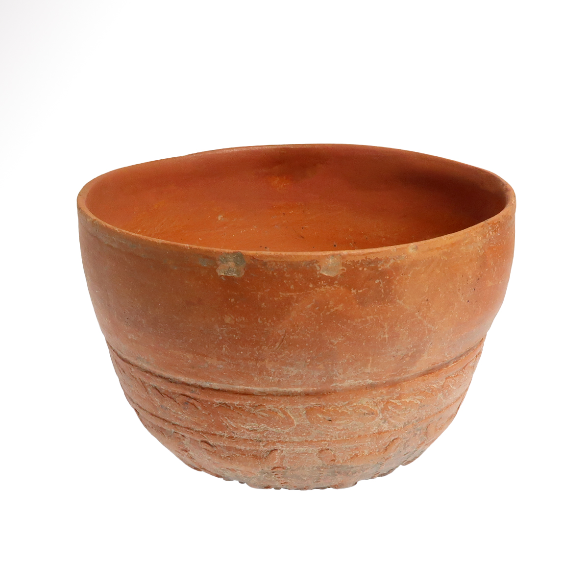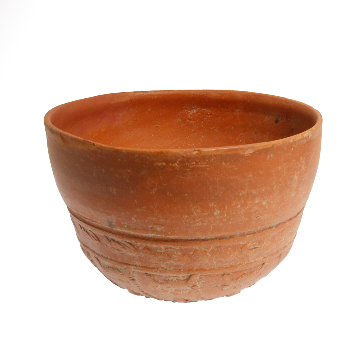 Fine bowl of terra sigilata, or samian ware, the surface decorated with impressed decorations of rosette, leaves, vases and flora.