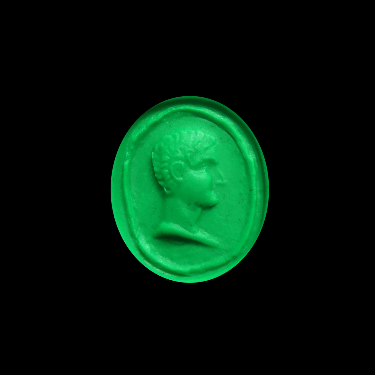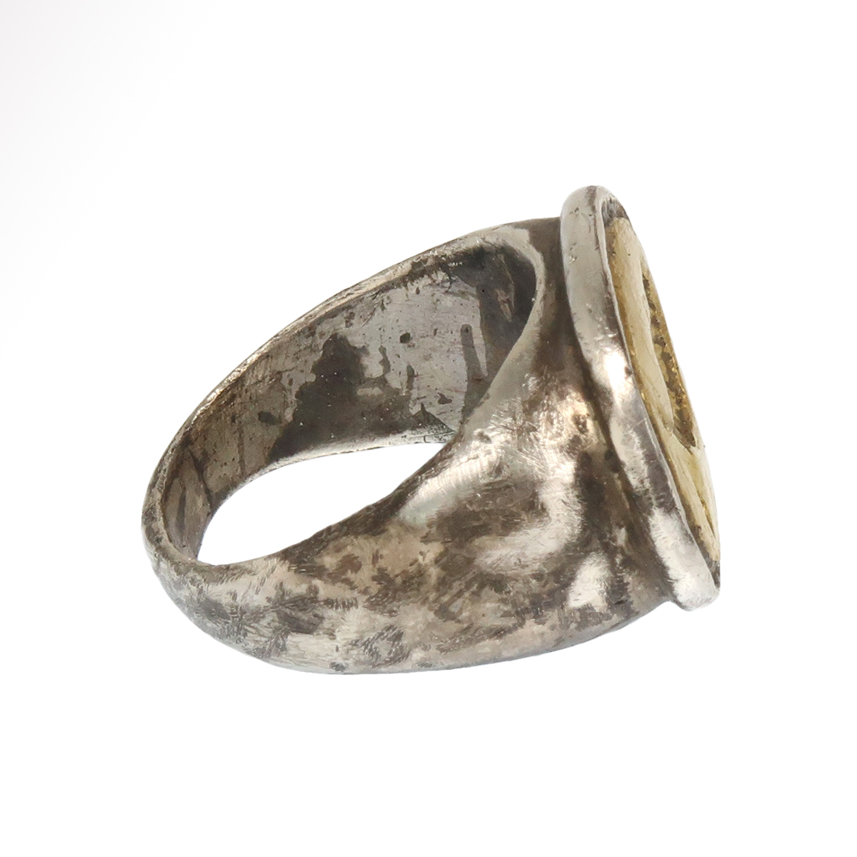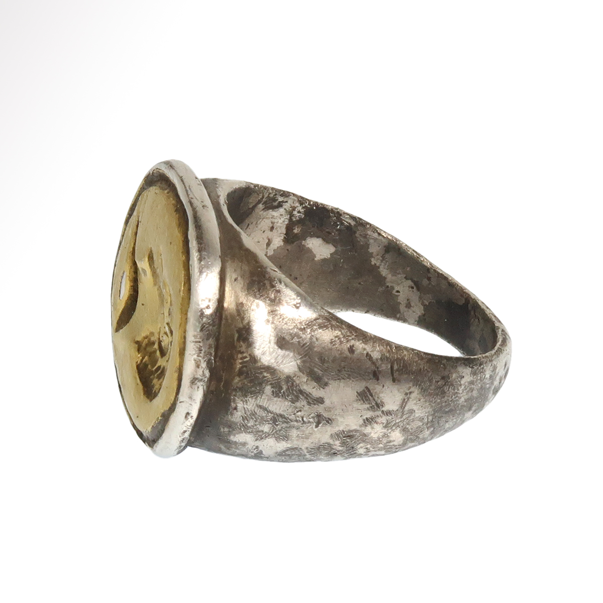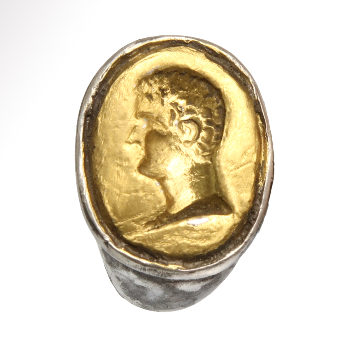 Roman Solid Silver Ring with Gold Intaglio, Bust of a Man, c. 1st - 2nd Century A.D.