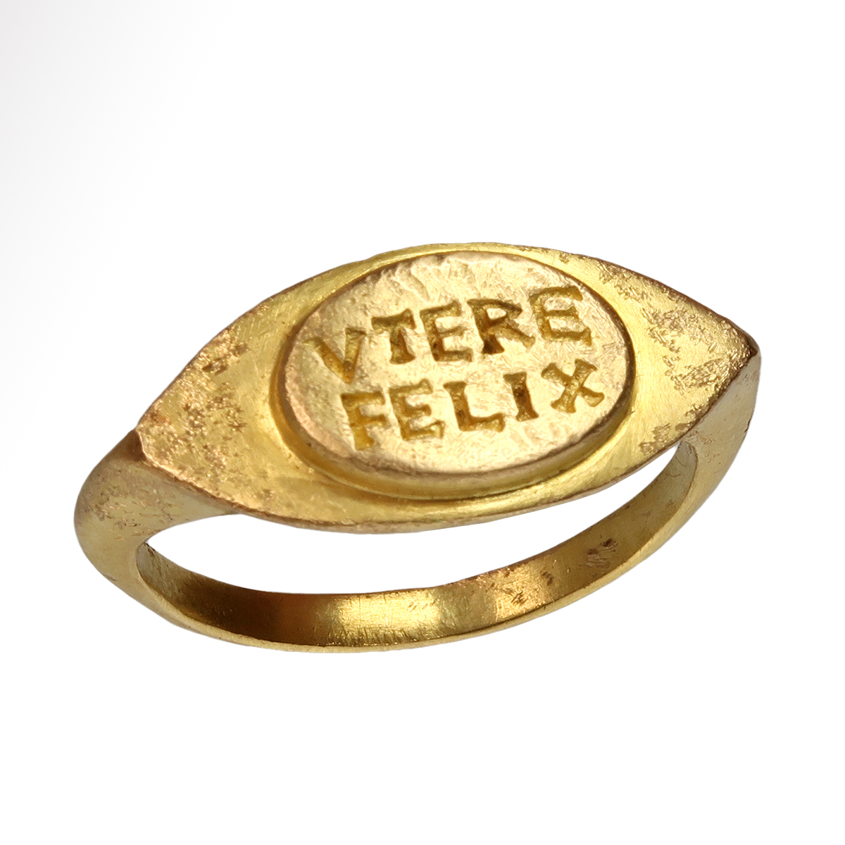 Roman Gold Ring with Inscription, VTERE FELIX, c. 2nd Century A.D.